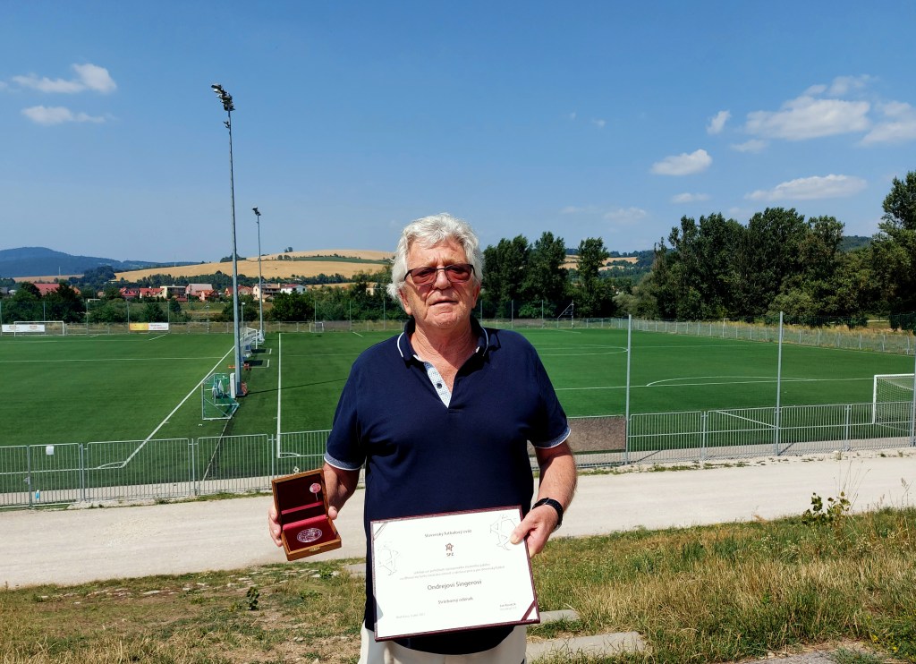 Ku striebornému odznaku Slovenského futbalového zväzu a jubileu 75. rokov, zablahoželali predstavitelia ÚFTS Ondrejovi Singerovi.