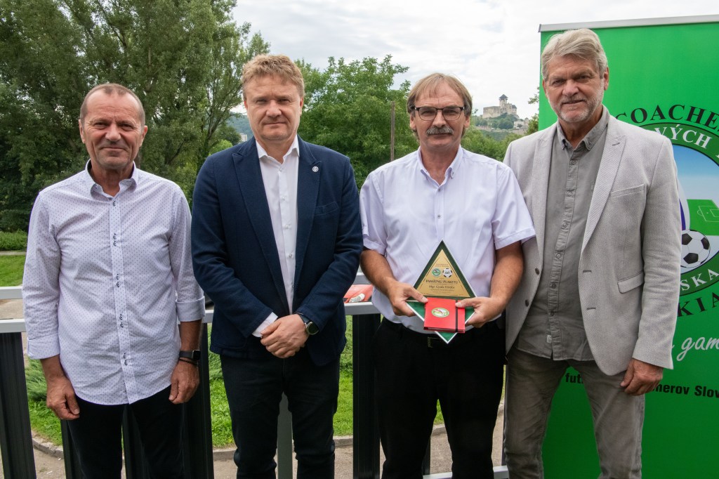 Jubilujúci tréneri si potom prevzali z rúk Ladislava Borbélyho (prezident ÚFTS), Ivana Kozáka (prezident ÚLK) a Ladislava Gádošiho (predseda ZsFZ) pamätné plakety.